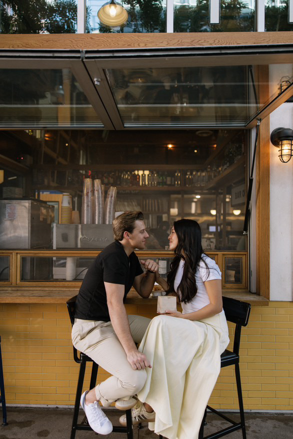 Engagement photos are a time capsule of this beautiful in-between moment—right before saying “I do.” Dana and Jared chose downtown Phoenix as the backdrop for their engagement session, making it not just a photo shoot, but a walk down memory lane. They visited their favorite restaurant, their go-to spots around the city, and of course, included their dog (because what’s an engagement session without your furry best friend?). The result? A collection of photos that tells the story of their everyday love—the kind built on shared meals, weekend strolls, and the life they’re building together in Arizona.